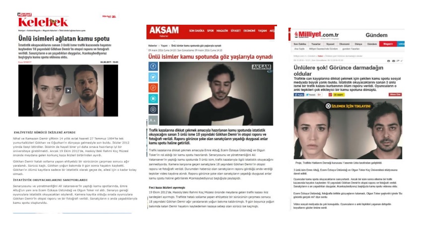 "Can Kaybediyoruz Kamu Spotumuz, 100'den fazla haber sitesinde videolu haber olarak yayınlandı. Bu sayede kamu spotumuz milyonlarca kez izlendi."